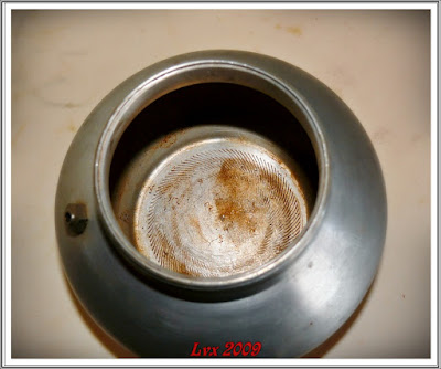 Il fornello a spirito è dotato di una molla e di 2 pesetti che fanno interrompere la fiamma non appena la caldaia si solleva per effetto del passaggio dell'acqua nel bicchiere in vetro.