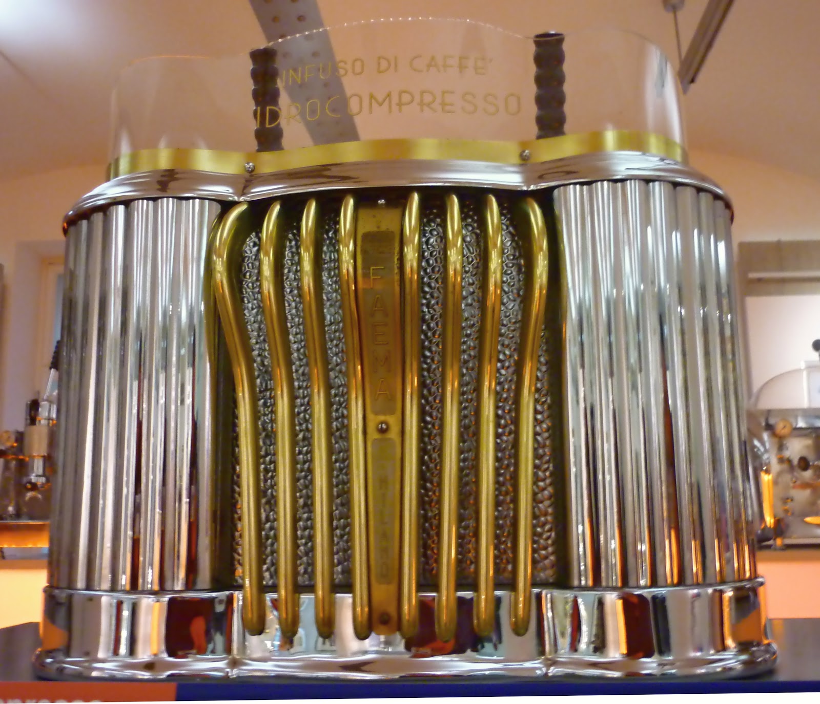 Gaggia, Faema, quante forme deliziose, rubate alle colonne greche o ai radiatori delle macchine dell'epoca.